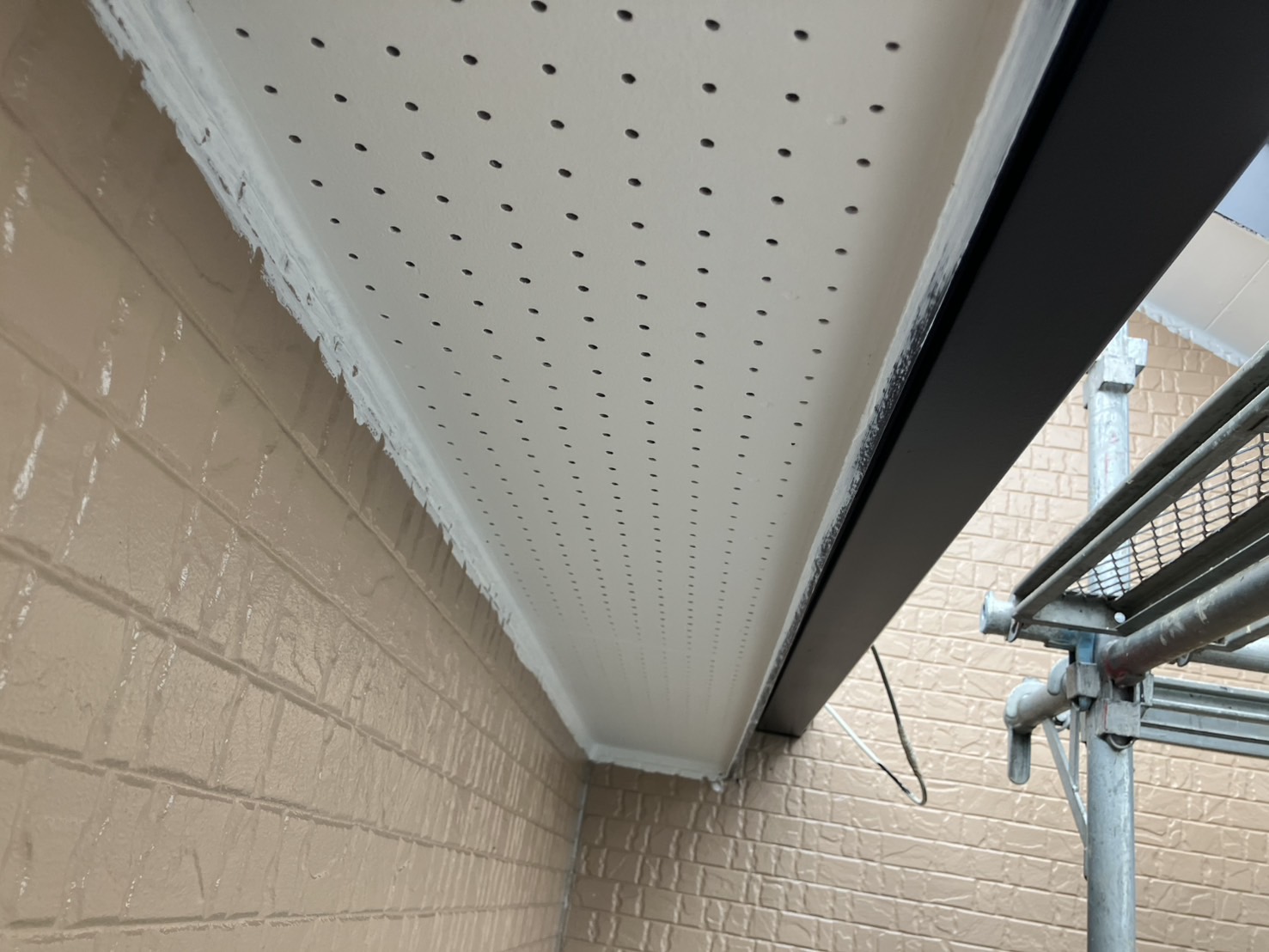 軒天井塗装(のきてんじょうとそう)は、建物の軒下(屋根の外側の裏部分)にある天井部分を塗装する作業です。主に以下の目的で行われます。