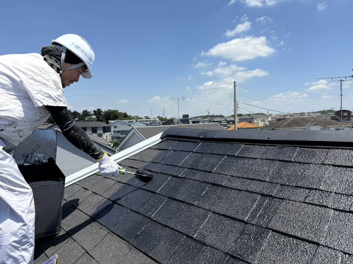 屋根の中塗り作業中👷♂️☀️