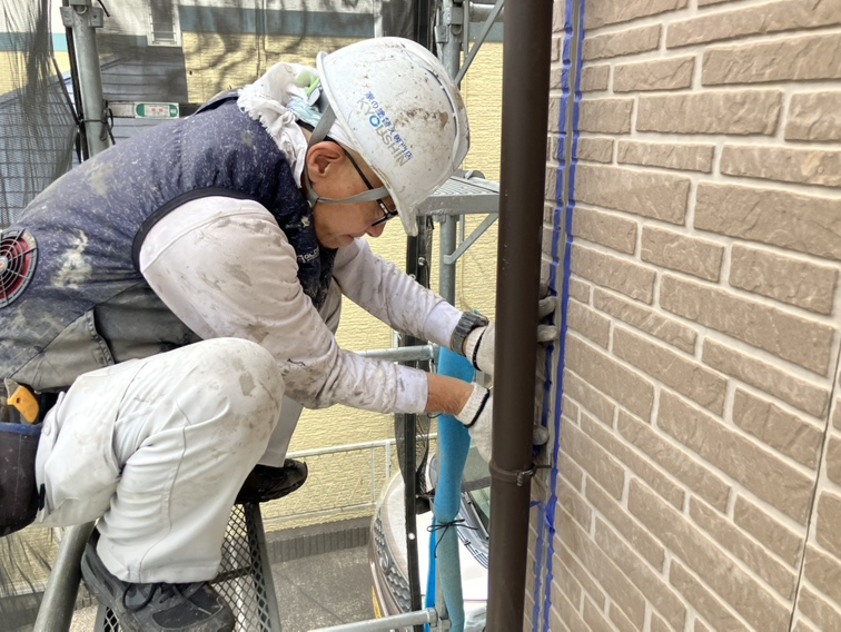 昨日カットした部分の既存シールを撤去し、本日は養生作業と新しいシールの打ち込みを行っていました。