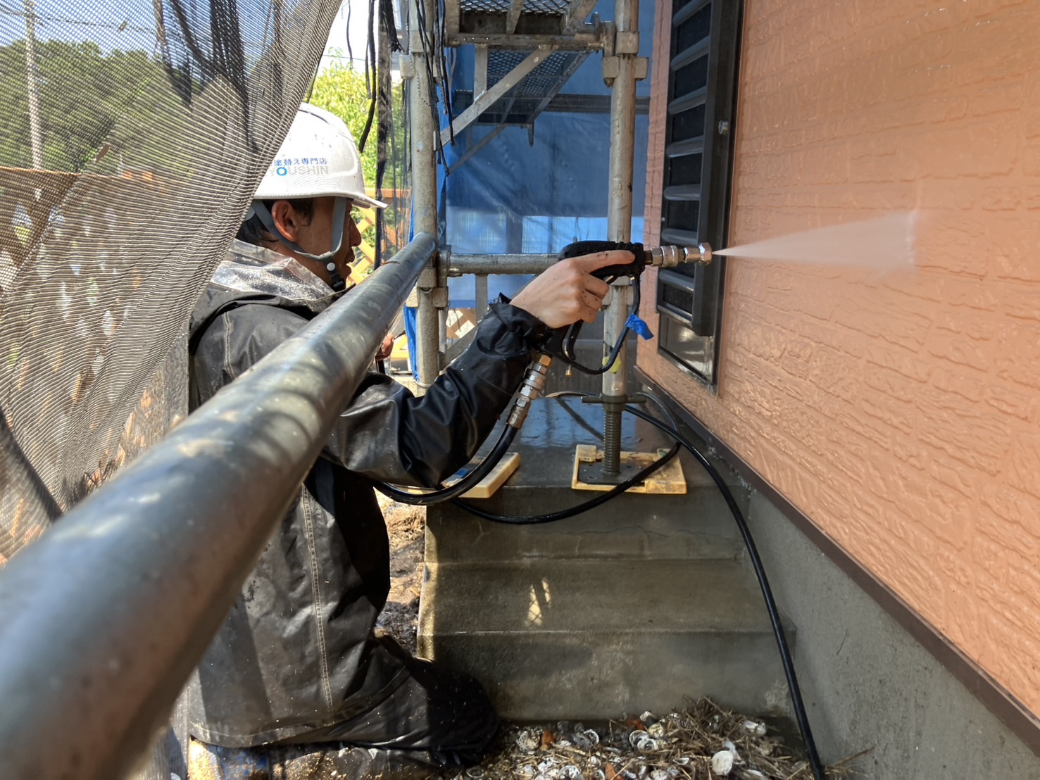 外壁塗装を行う前に欠かせないのが、この高圧洗浄です。