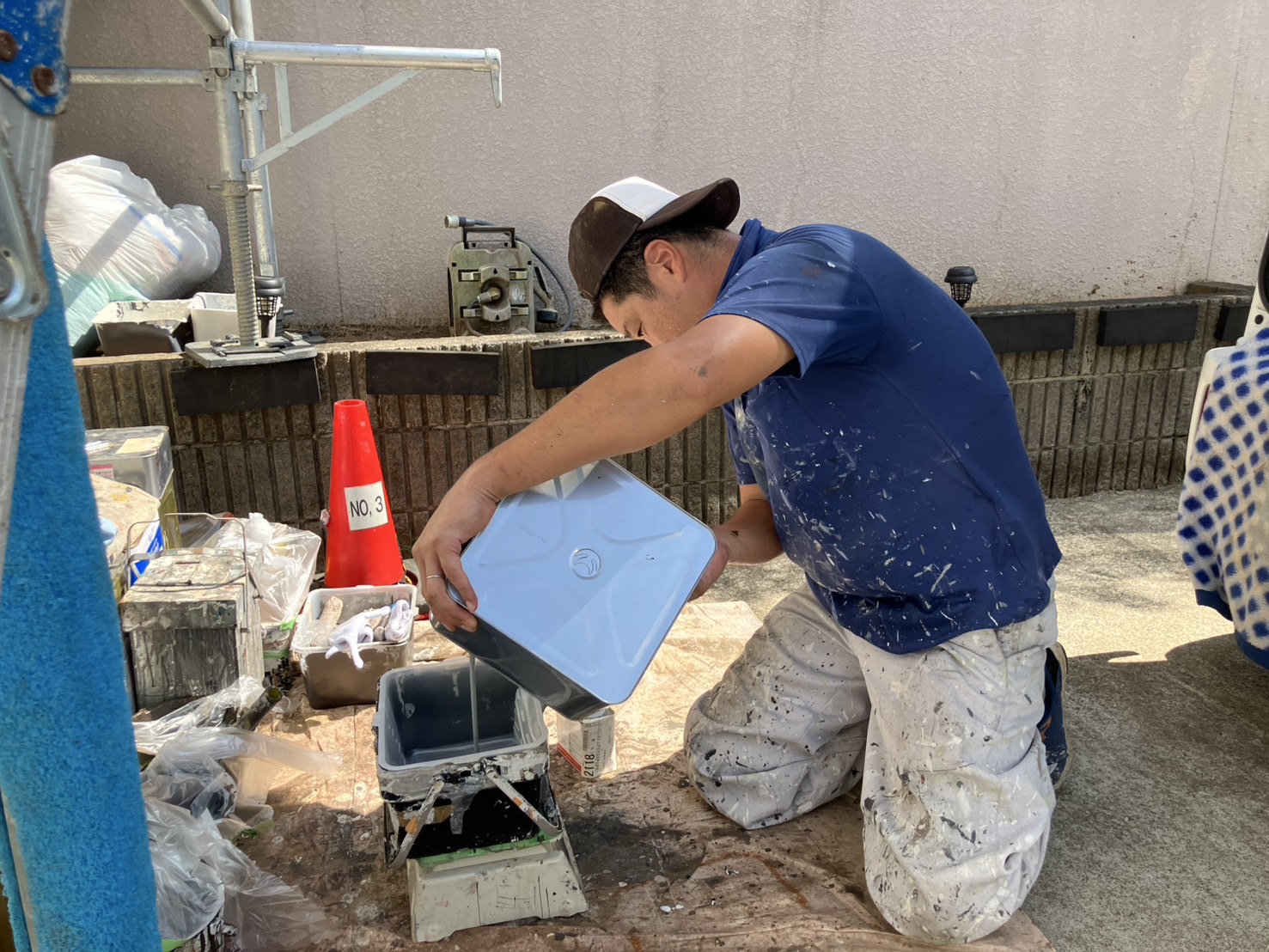 こちらの写真は、塗装に使う塗料を準備している様子です🏠