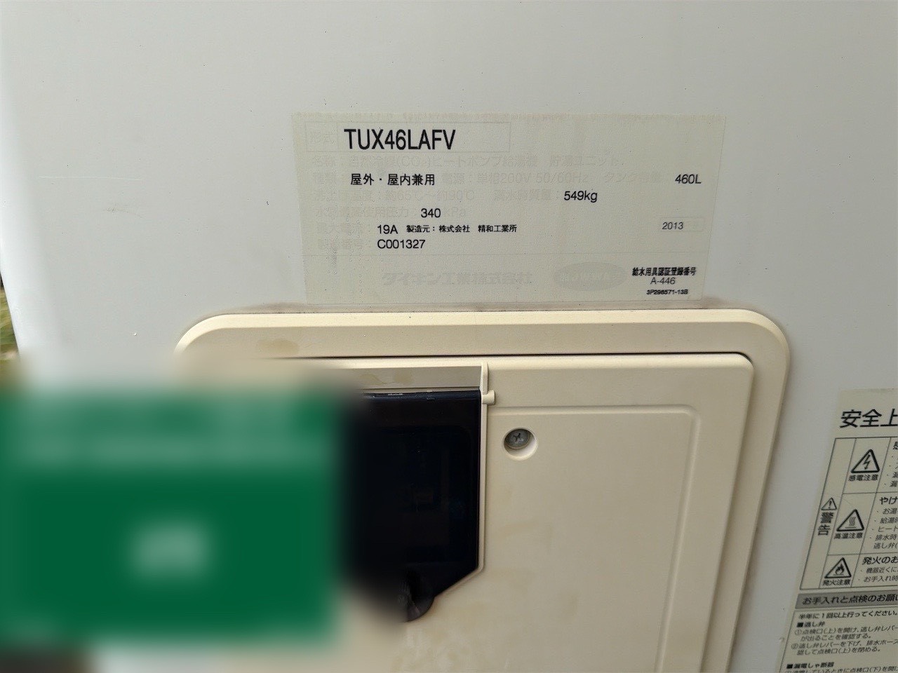 現場調査を行わせていただきましたところ、既存のエコキュート(340L)が 高圧タイプ の機種でした。