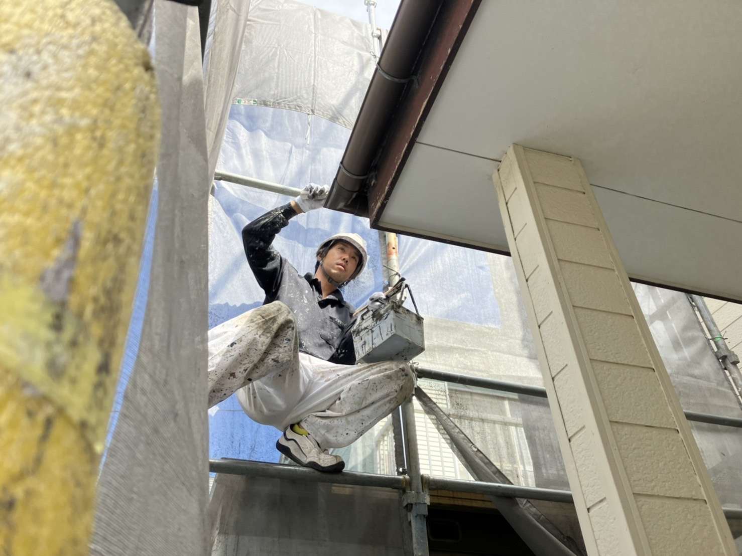 施工がしづらい場所もスイスイ塗装をしている大黒さん!