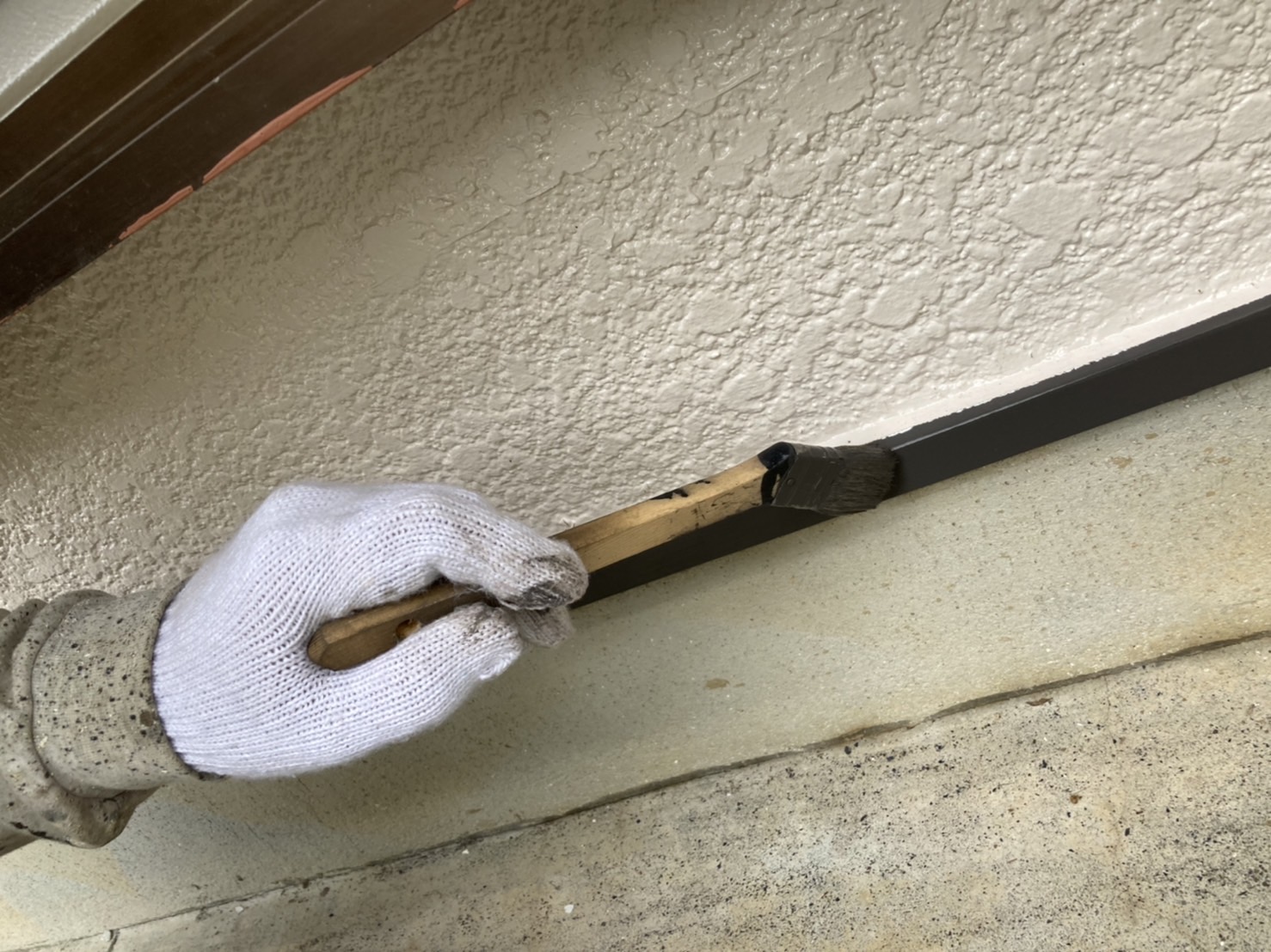 ハケで水切りの塗装をしている様子をご紹介いたします!