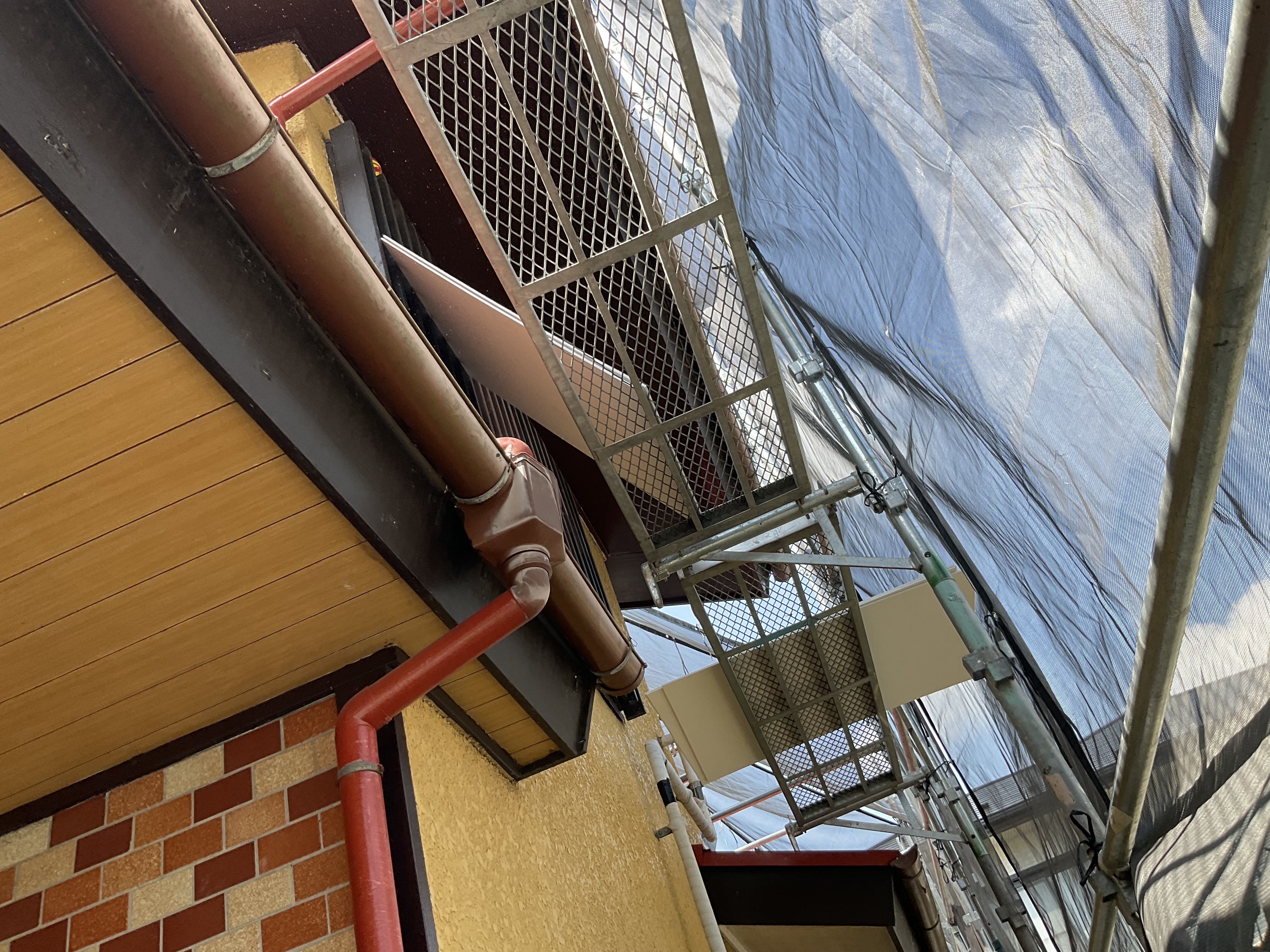 新しい軒天を張り付けていくので切った軒天材を取付け場所に置いていきます!