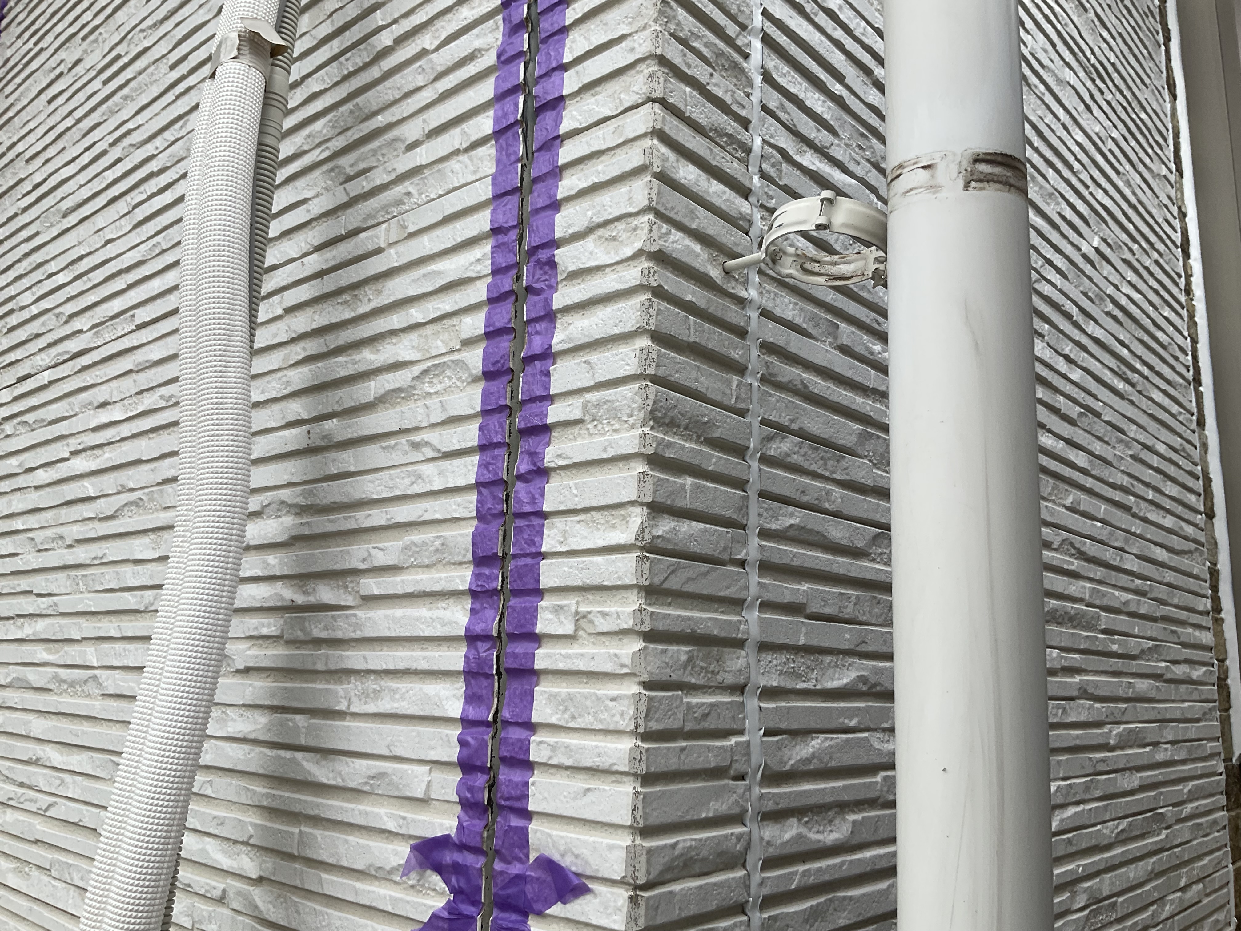 この外壁のコーナー部分も打ち替えなのテープを貼って準備完了です!
