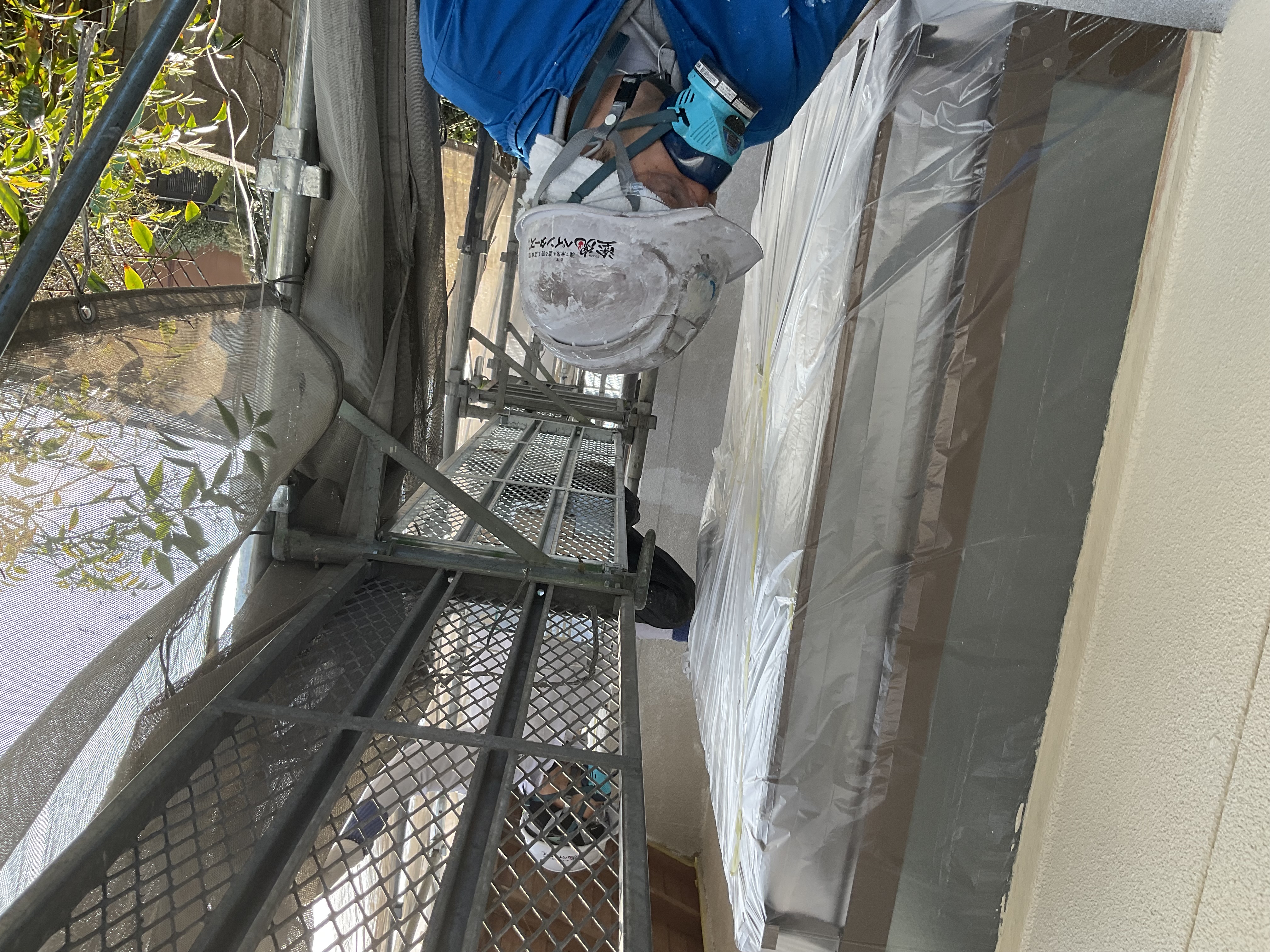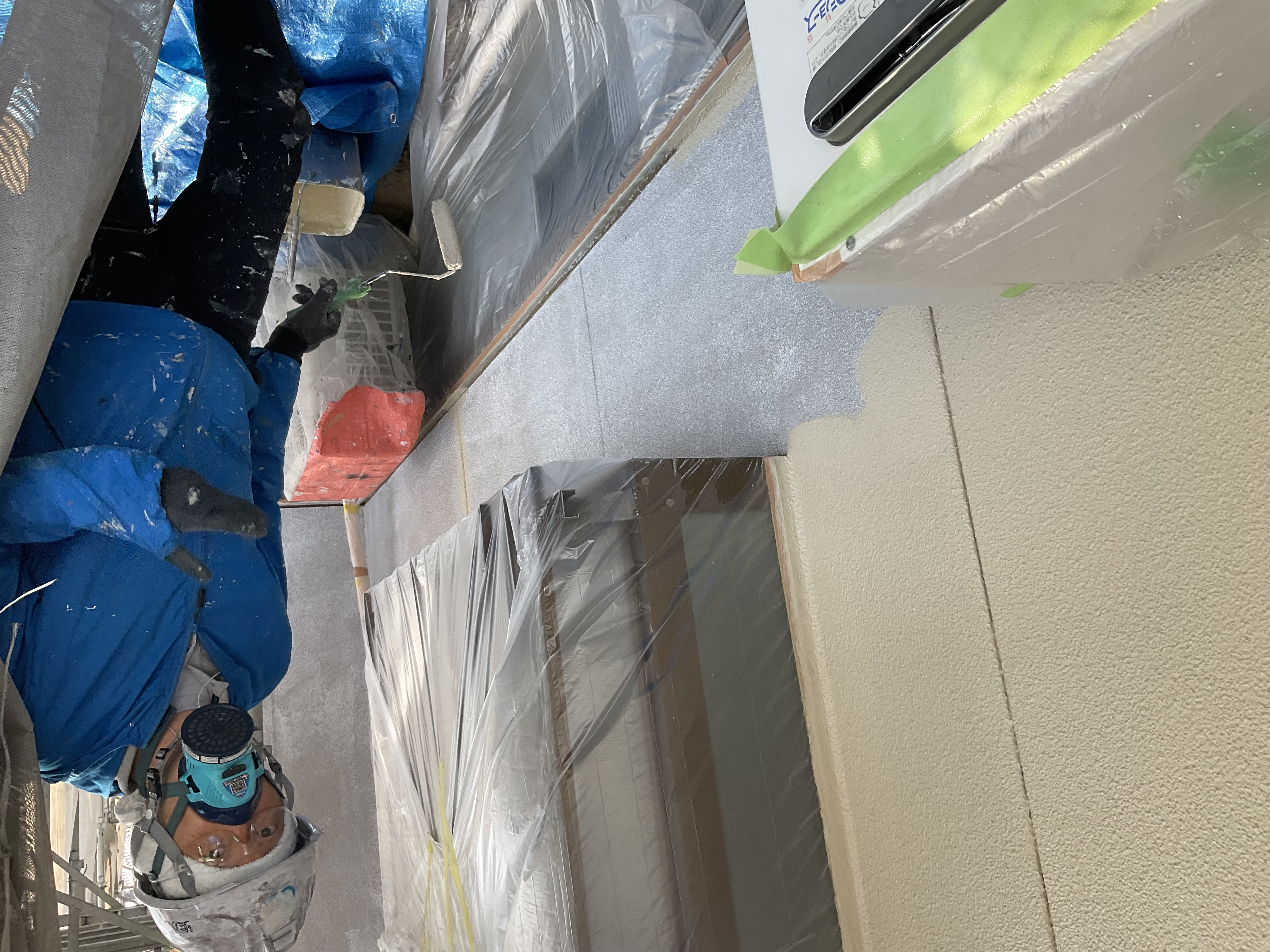 下塗りを均一に塗装していき、ここまでは塗り終わってるよ〜と現場全てを把握しています(^。^)
