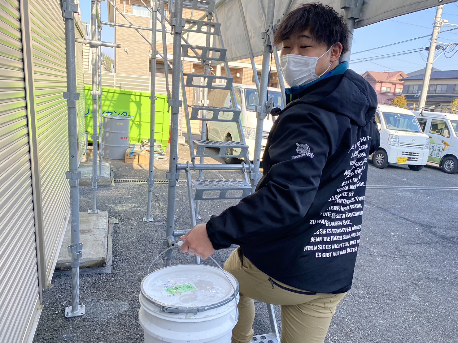 朝の掃除の時間に、現場から戻ってきた塗料を片付けました!!
