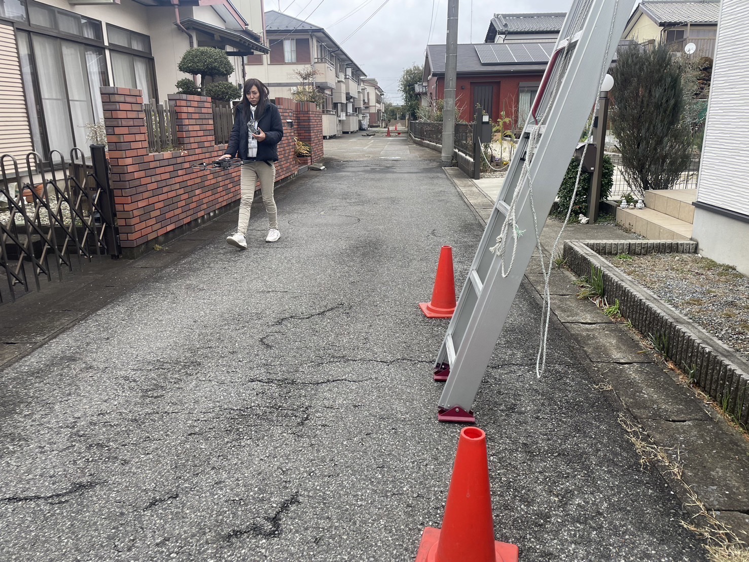ハシゴの周りにはカラーコーンをたて、周囲への配慮もしていきます!