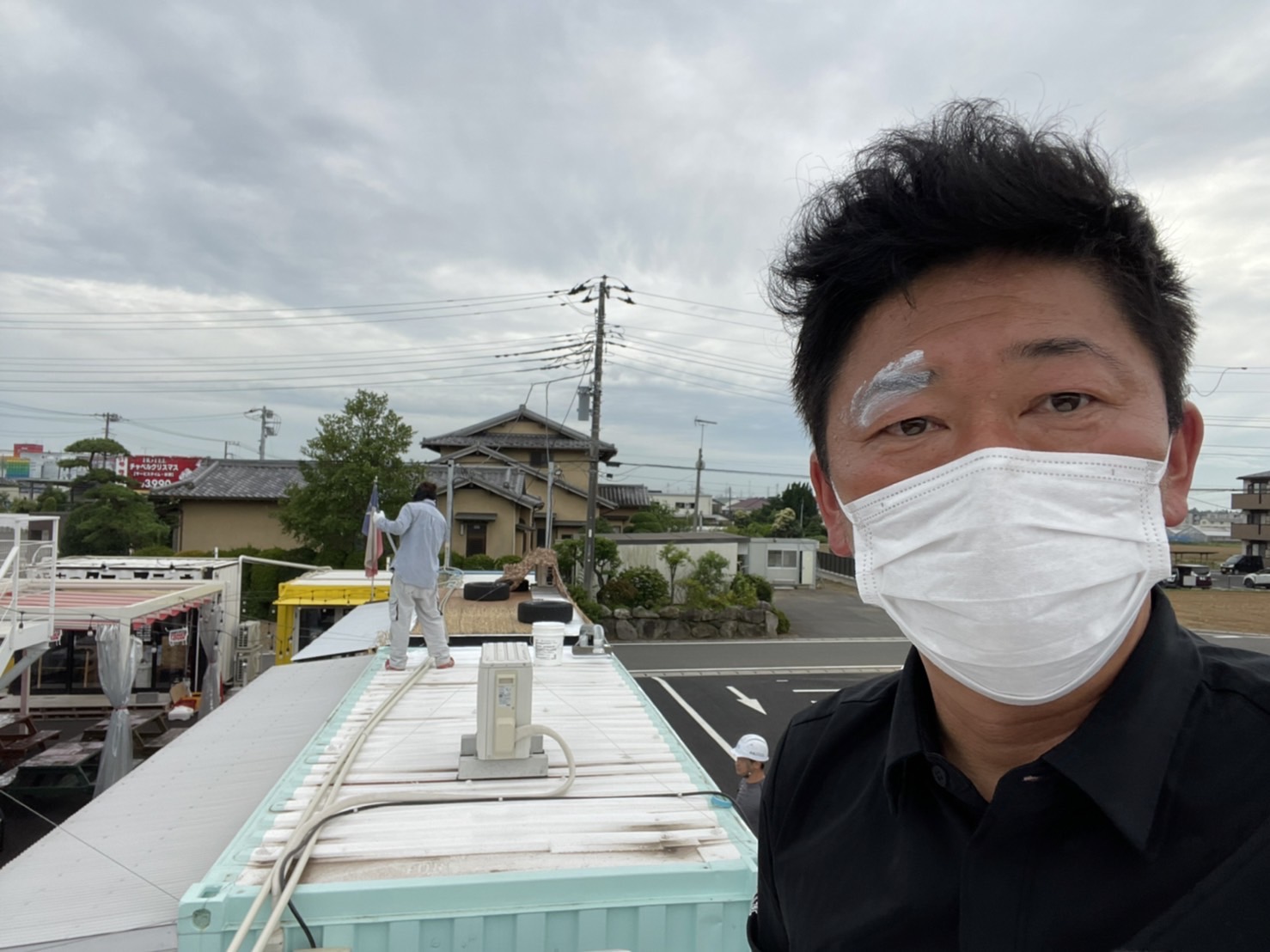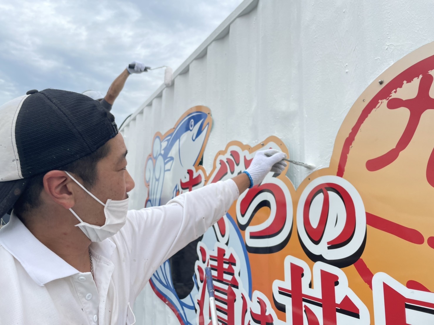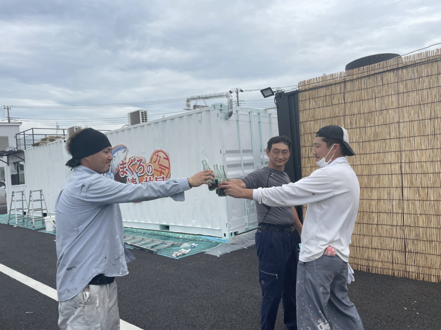 根本さん、武林さん、岩本さんと、熊井社長4人で塗装を行いました!